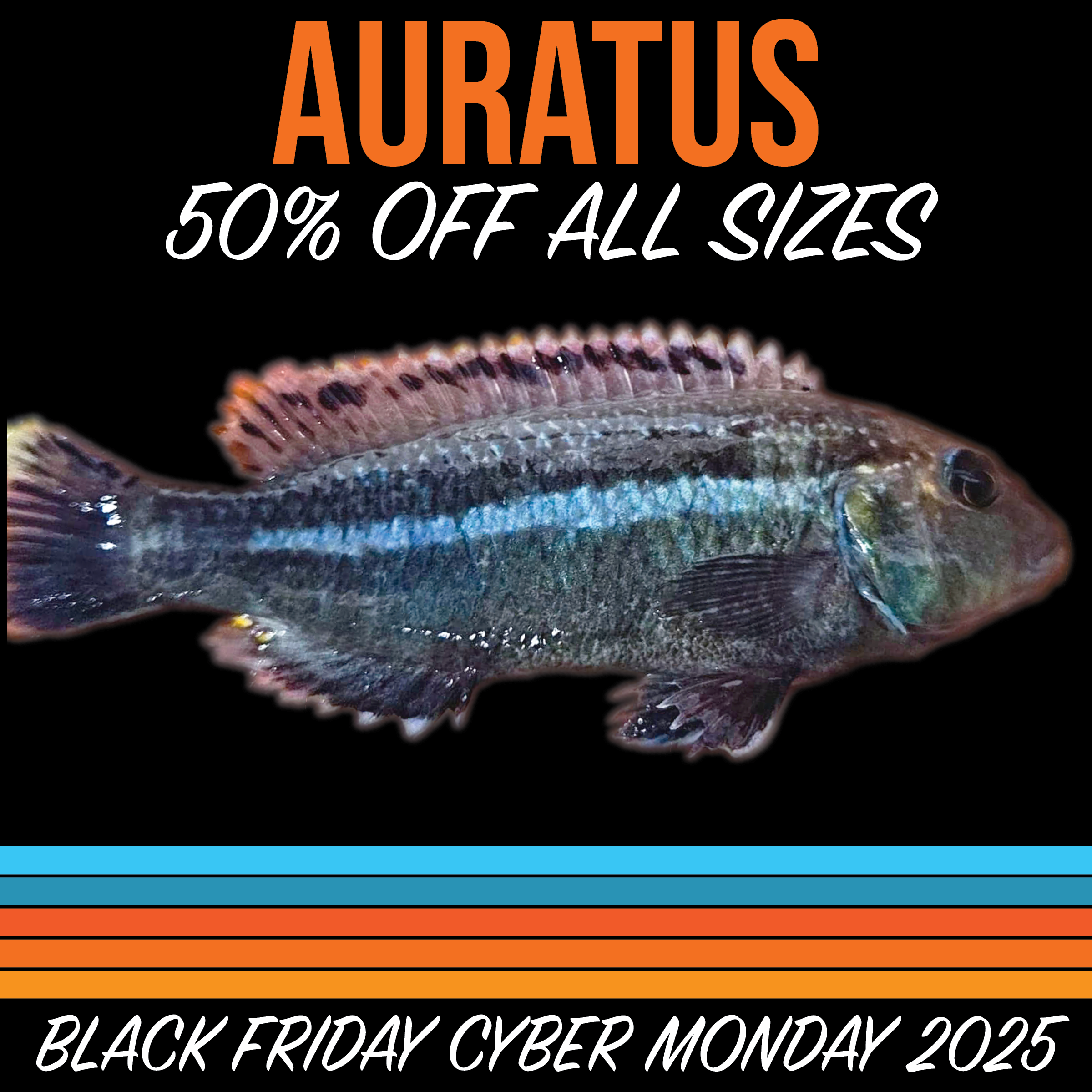 The Auratus Cichlid is a bold and eye-catching Mbuna species native to Lake Malawi. Known for its striking appearance and aggressive temperament, this fish is best suited for experienced aquarists who can provide proper housing and compatible tank mates. With its commanding presence and intense personality, the Auratus makes a standout addition to any Mbuna collection, but it is not recommended for peaceful community aquariums.