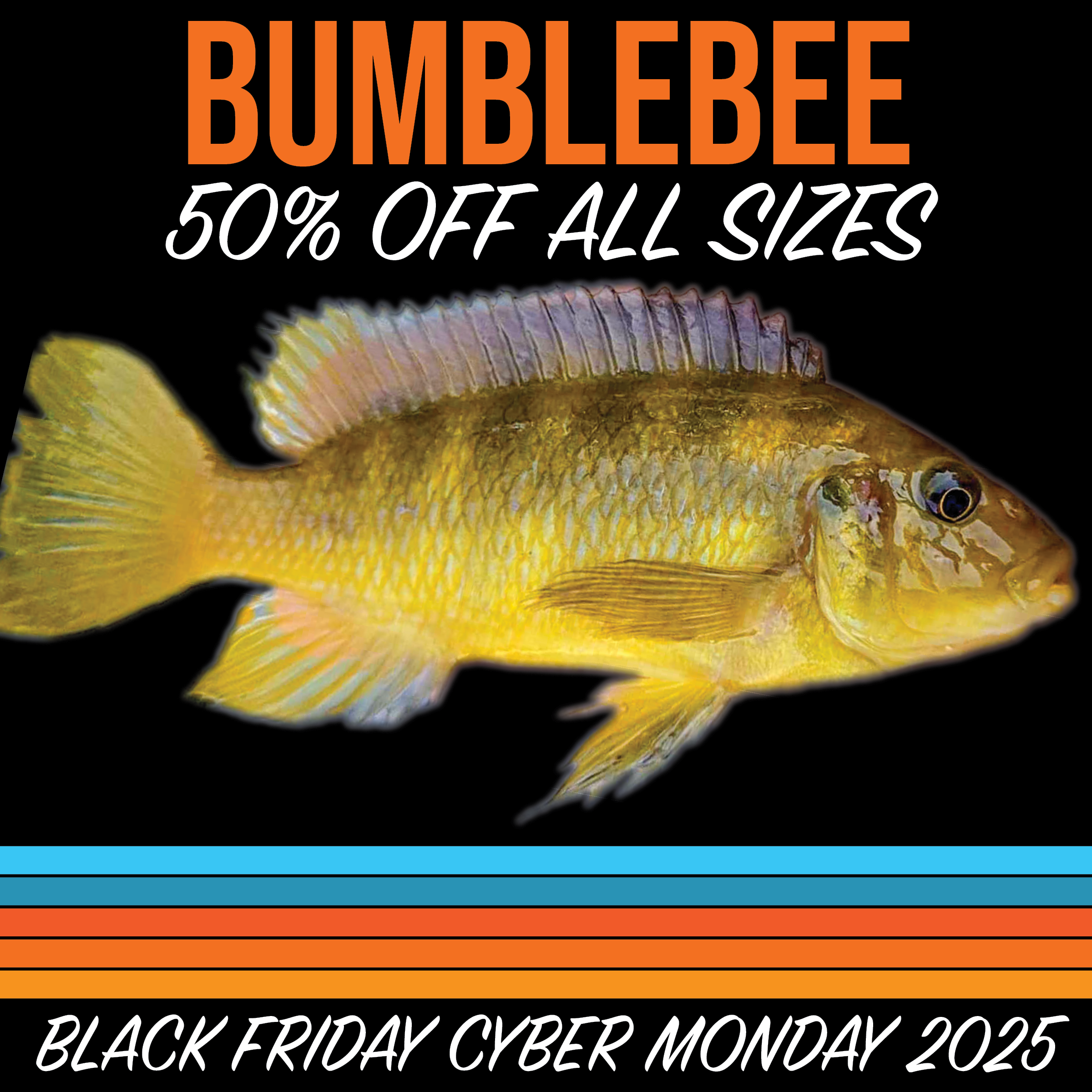As with other Mbunas, both males and females display coloring. As these fish reach maturity they will take on a yellow and black pattern, reminiscent of a bumblebee. These Mbunas can change colors fast! Yellows can become pale and their black stripes can become brown, temperament plays a big role in coloring.