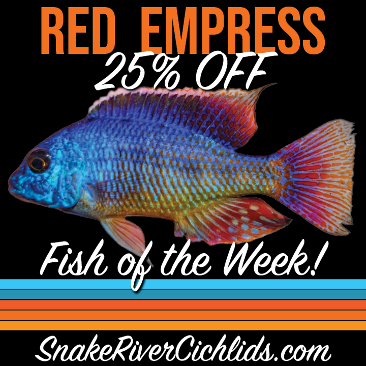 Males have blue heads and bodies with combinations of yellows, reds and oranges. Their tail fins can develop beautiful red and blue spotted coloring. Dorsal fins as well can develop red spots on blue background. Truly an elegantly colored hap!